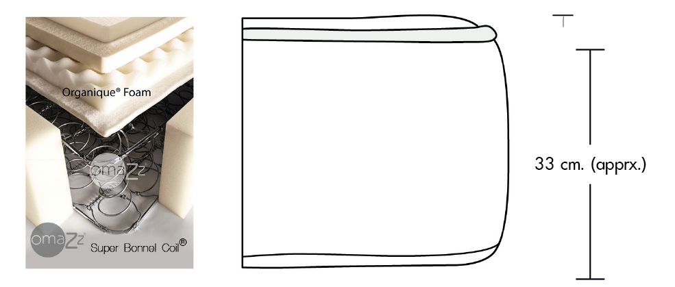 The Omazz® Organique features a comfort layer and an opened cell-honeycomb system which made from Eco-friendly natural extract foam incorporating the combination of spring system: Omazz Super Bonnel®. With the natural therapy concept, sleep will be the best moment for those who love a firm mattress.