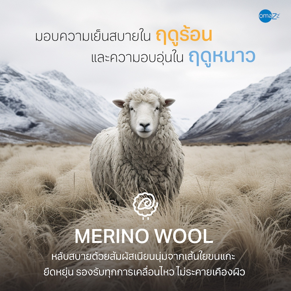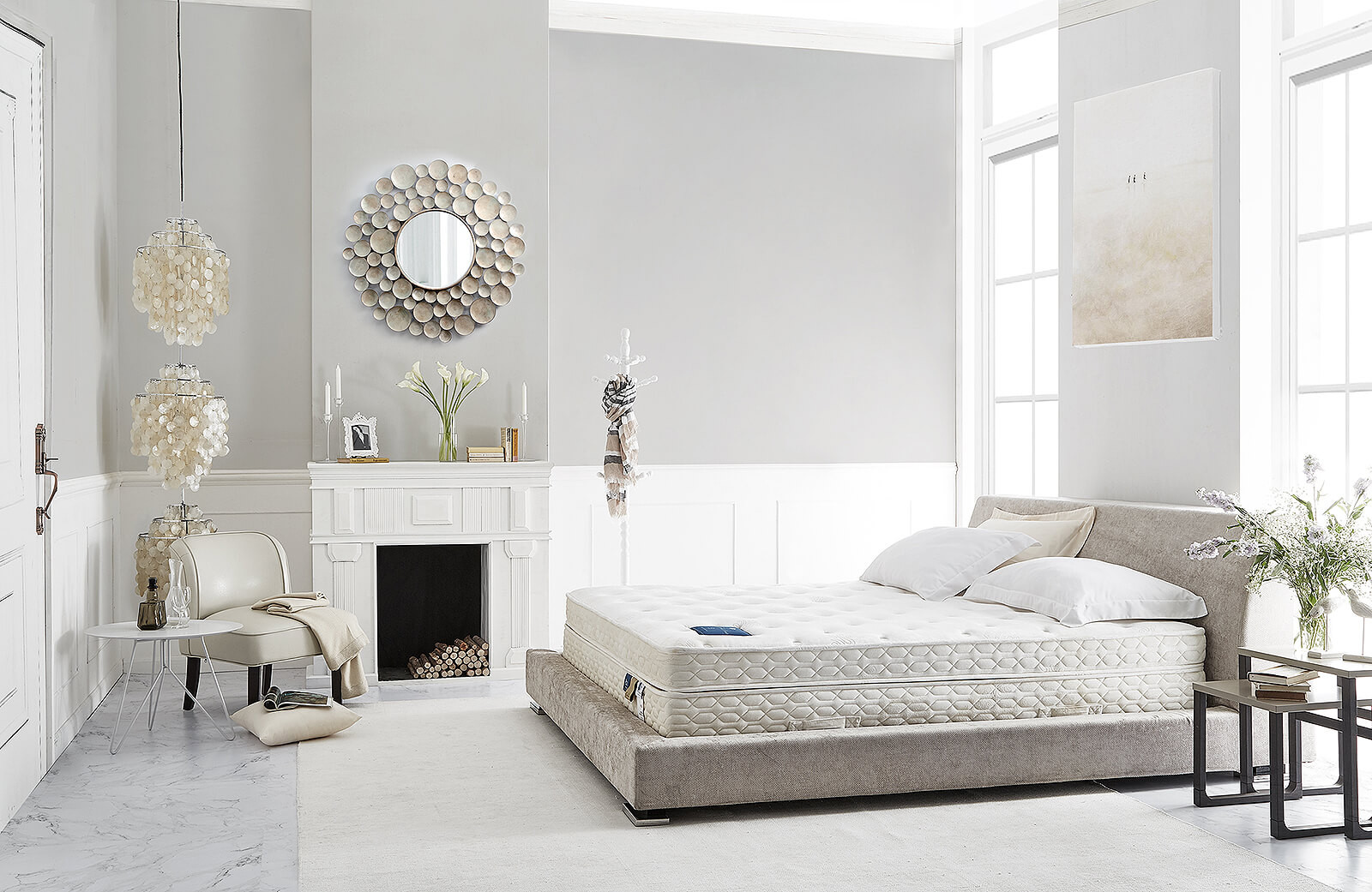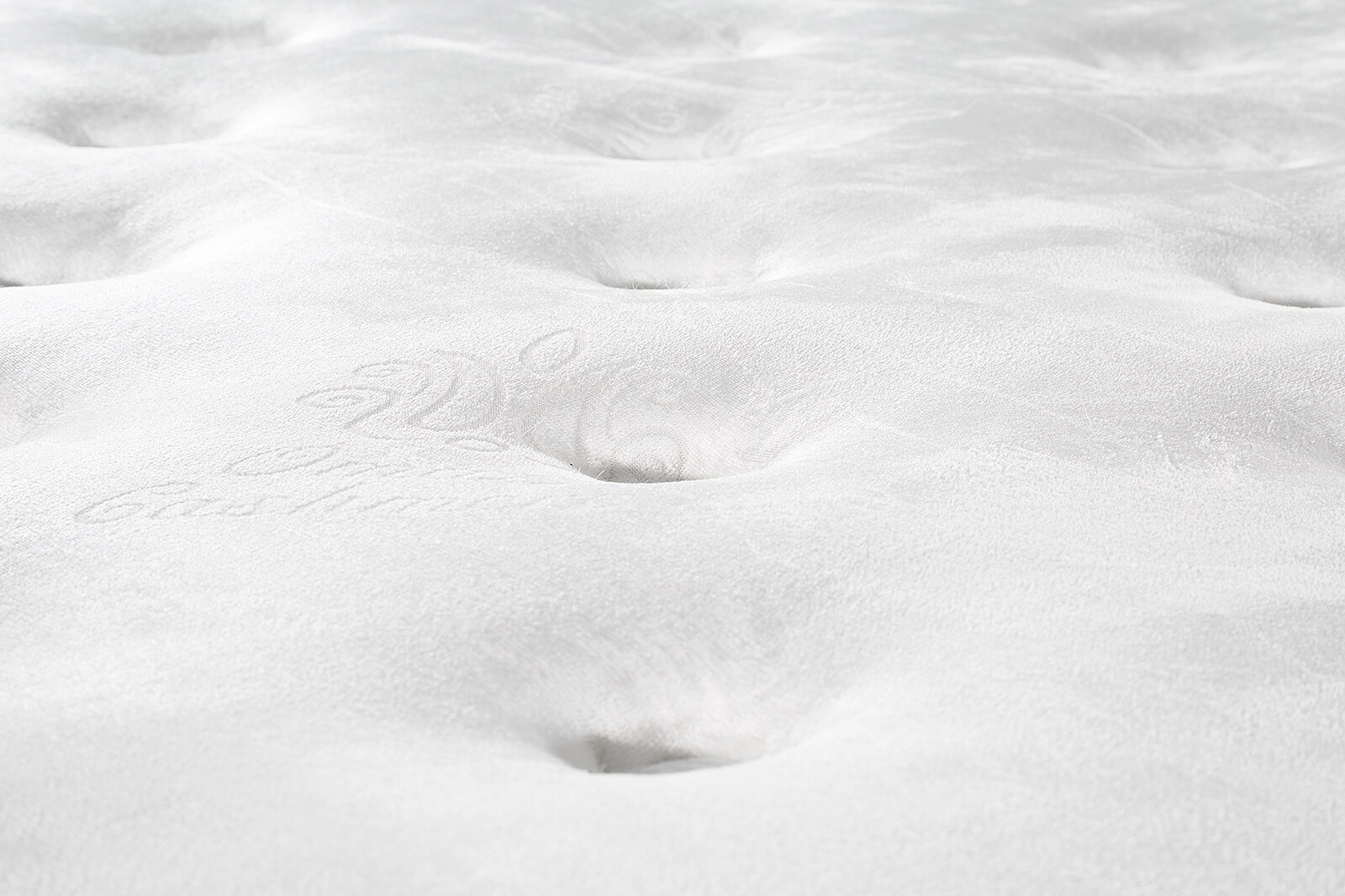 Naturally grown Italian Merino Wool is renowned for its temperature regulating properties, yet exceptionally soft and lightweight. Thanks to the spontaneous curls of the merino wool fiber, it can absorb moisture up to 30% of its own weight without feeling clammy and renders back humidity 7 times quickly than many other textile fibers, offering dry sleep environment at all times. Omazz doesn’t stop there. Furthermore, Omazz Merino Wool used in Royal Frank Monte Collection is oxygen treated. This environmentally friendly process is unlike traditional method of using harmful chlorine gas, oxygen eliminates wool scales without damaging the proteins of the fiber resulting in soft, hygroscopic, odorless and permeable to vapor characteristics. Cozy allurement, restful sleep – Natural Therapy for Perfect Sleep.