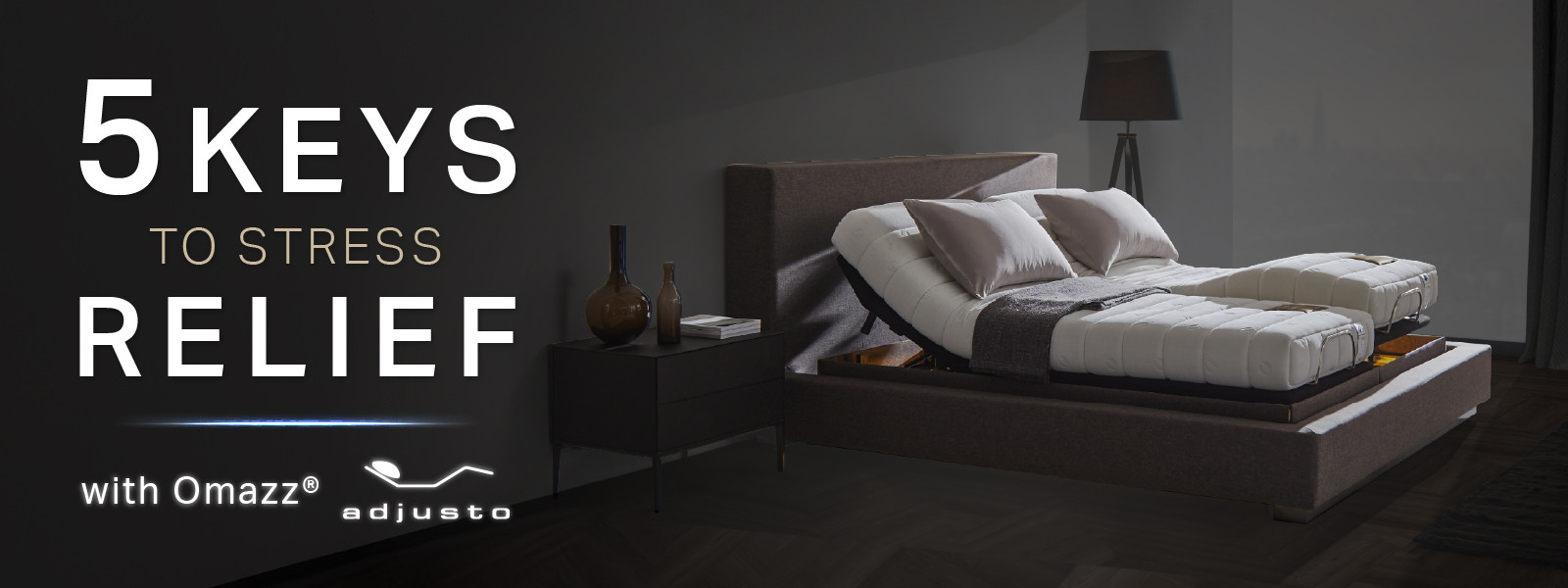 ปลดปล่อยความเมื่อยล้า พร้อมโอบรับความผ่อนคลายที่ออกแบบมาเพื่อคุณ ด้วย Omazz® Adjusto เตียงปรับระดับไฟฟ้าที่ออกแบบมาเพื่อตอบโจทย์การนอนและการผ่อนคลายอย่างแท้จริง ปรับองศาได้ตามต้องการ รองรับสรีระอย่างสมบูรณ์แบบ พร้อมฟังก์ชันเพื่อสุขภาพและความสะดวกสบายขั้นสุด ที่ออกแบบมาเพื่อช่วยให้คุณเข้าสู่การพักผ่อนอย่างลึกซึ้ง ทุกฟีเจอร์ถูกออกแบบมาเพื่อช่วยลดความเครียด ให้คุณได้ดื่มด่ำกับการพักผ่อนในแบบที่ไม่เคยสัมผัสมาก่อน