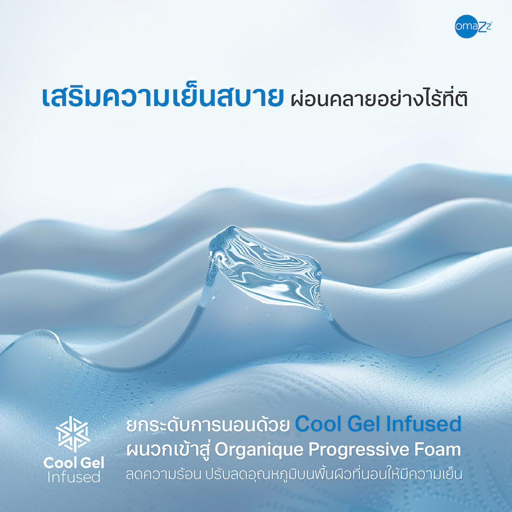 • Organique Progressive Foam - Cool Gel infused ชั้น Organique Progressive Foam ผสาน Cool Gel ช่วยขจัดความร้อนปรับลดอุณหภูมิบนพื้นผิวที่นอนให้มีความเย็น ช่วยรองรับในแต่ละจุดของร่างกายได้อย่างสมบูรณ์แบบ