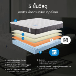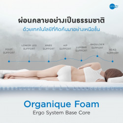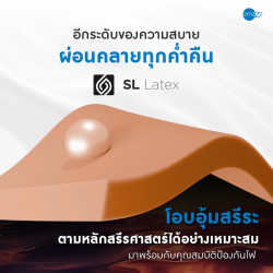 โอบรับสรีระตามหลักสรีรศาสตร์ได้อย่างสมบูรณ์แบบ SL Latex เสริมการรองรับ ปรับสมดุลการกระจายน้ำหนักได้ดีกว่า พร้อมคุณสมบัติป้องกันไฟยกระดับความสบายในการพักผ่อนด้วยระบบรองรับน้ำหนัก Organique Foam ดีไซน์พื้นผิวแบบ Ergo Zoning System แบ่งโซนการรองรับน้ำหนักตามสรีระ ซัพพอร์ตกระดูกสันหลังให้คงรูป มอบความรู้สึกผ่อนคลายความเมื่อยล้า