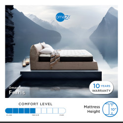 ความสุขสบายของการพักผ่อนที่ Omazz® พร้อมส่งมอบความสงบเพื่อให้คุณได้ดื่มด่ำกับสมดุลแห่งธรรมชาติกับที่นอนรุ่น Ferris นวัตกรรม Talatech™ Latex Topper 2 ชั้น ช่วยสลายแรงกดทับได้อย่างมีประสิทธิภาพ