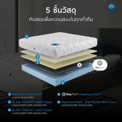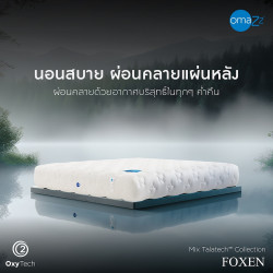 การออกแบบรูปทรงด้วยปรัชญาแห่งความเรียบง่ายและการรองรับของชั้นวัสดุออร์แกนิคทำให้ที่นอน Omazz รุ่น Foxen เป็นนวัตกรรมที่นอนที่สมบูรณ์แบบทั้งในเรื่องของความสบายและดีไซน์ที่สวยงาม โดยโฟมลาเท็กซ์ Talatech™ Latex ชั้นบนมีความยืดหยุ่นถึง 26 ILD 2 ชั้นประกบกัน ช่วยสลายแรงกดทับได้อย่างดีเยี่ยม เสริมด้วยเทคโนโลยี Oxytech ชั้นโฟมออร์แกนิคคาร์บอนที่ช่วยสร้างมวลอากาศอันบริสุทธิ์รอบตัวในระหว่างนอนหลับ มอบความปลอดโปร่งที่ทำให้หายใจสะดวกมากขึ้น โดยจะเสริมไว้ที่ด้านบนฐานโฟมออร์แกนิคที่มีความยืดหยุ่นถึง 60 ILD และดีไซน์พื้นผิวเพื่อรองรับแบบ Ergo Zoning System ซึ่งสามารถแบ่งโซนสรีระเพื่อช่วยลดแรงกดทับในทุกสัดส่วนของร่างกาย พาคุณก้าวเข้าสู่อีกระดับความสบายเพื่อที่สุดของความผ่อนคลายกับค่ำคืนสุดพิเศษ |