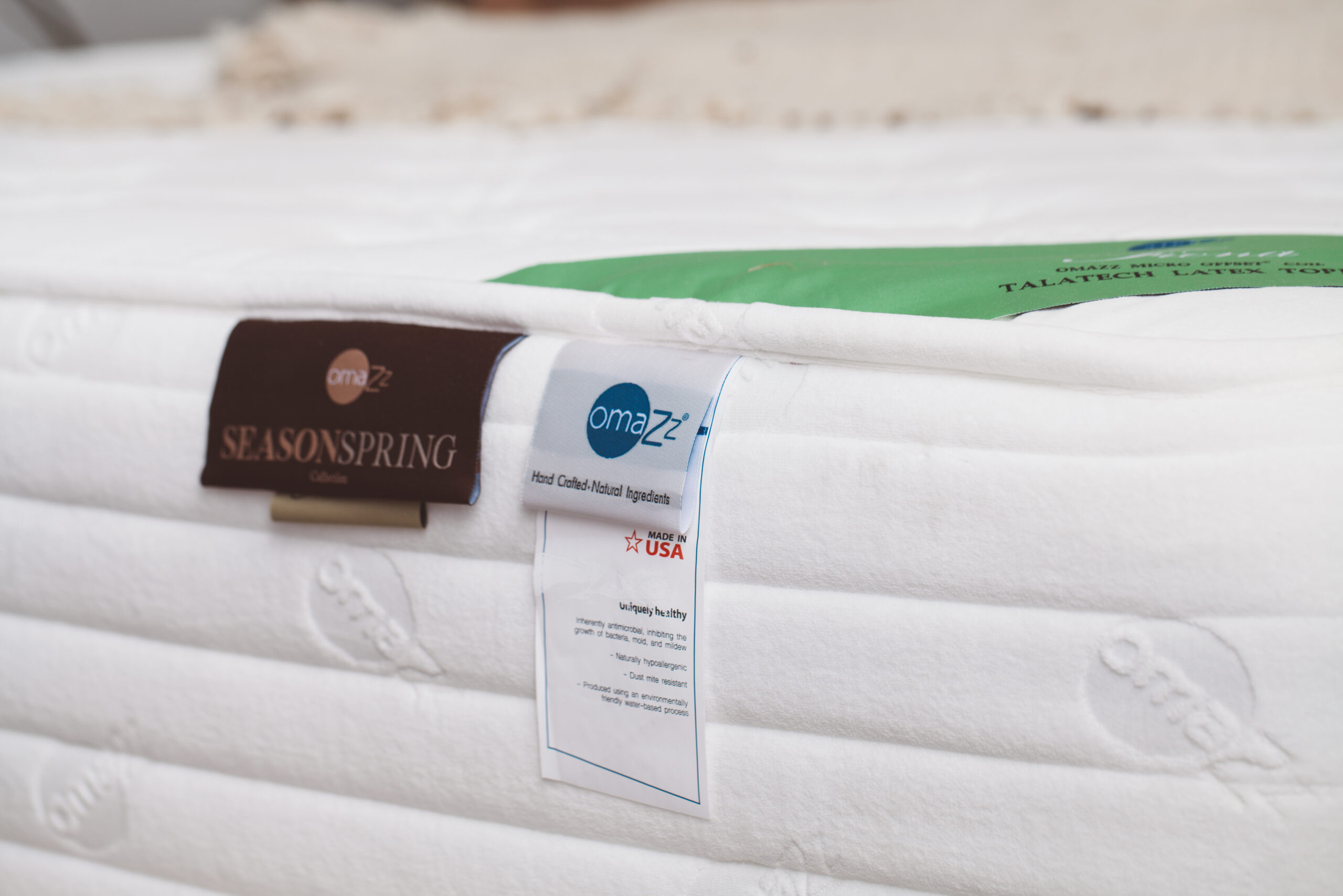 ความปราณีตในการผลิตด้วยกรรมวิธีแบบดั้งเดิม(Hand-made) เรายังคงรักษาศิลปะการประกอบที่นอนแบบดั้งเดิมด้วยมือ พร้อมใช้วัตถุดิบจากธรรมชาติ เช่น กาวสูตร “น้ำ” (Water-based) เพื่อให้มั่นใจความบริสุทธิ์สะอาดของชั้นวัสดุทุกชั้นในที่นอนโอมาซอย่างแท้จริง