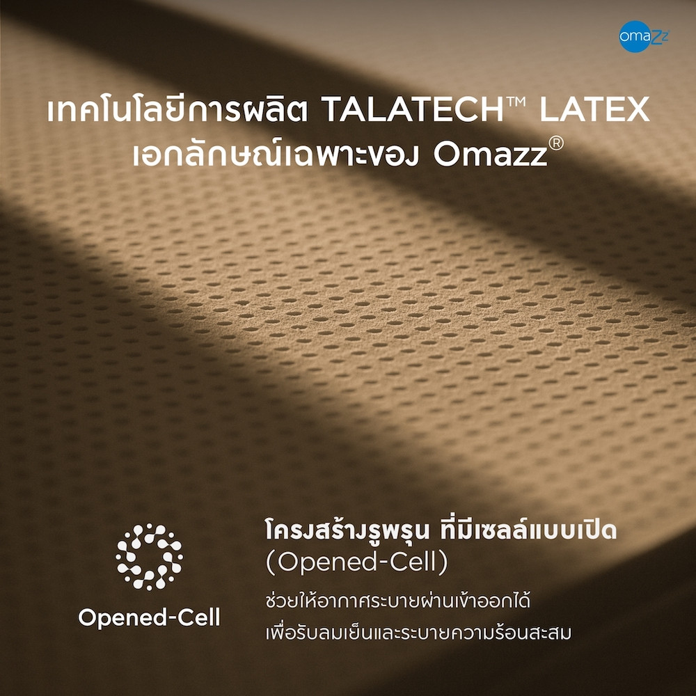 ความปราณีตในการผลิตด้วยกรรมวิธีแบบดั้งเดิม (Hand-made) เรายังคงรักษาศิลปะการประกอบที่นอนแบบดั้งเดิมด้วยมือ พร้อมใช้วัตถุดิบจากธรรมชาติ เช่น กาวสูตร “น้ํา” (Water-based) เพื่อให้มั่นใจความบริสุทธิ์สะอาดของชั้นวัสดุทุกชั้นในที่นอนโอมาซอย่างแท้จริง