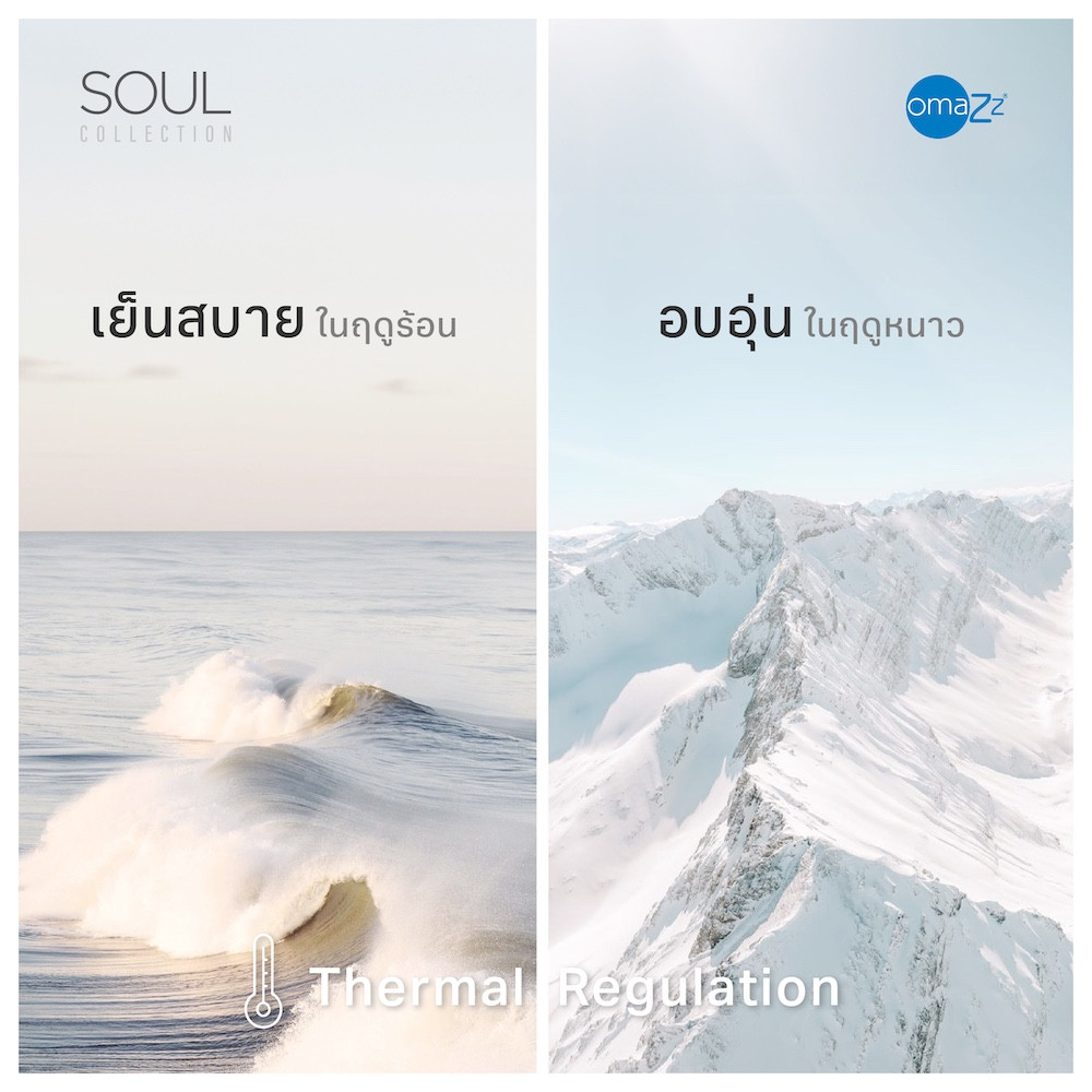 - Thermal Regulation: เย็นสบายในทุกฤดูกาล ด้วยคุณสมบัติที่ช่วยควบคุมอุณหภูมิของร่างกายให้เหมาะสม